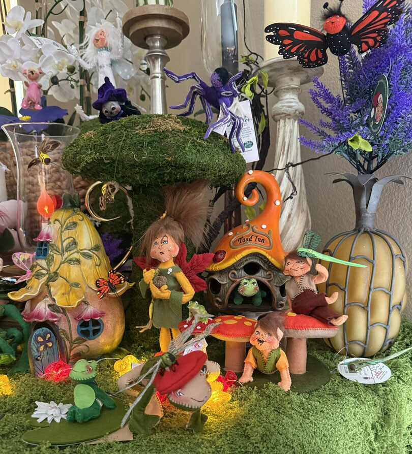 Her scene was brimming with magical details—from glowing lights to whimsical critters such as dragons, fairies, unicorns, and toadstools. Every element worked together to create a tiny world full of joy and discovery—something that truly embodies the spirit of Annalee magic. It’s that sense of storytelling, creativity, and delight that makes her display so unforgettable.