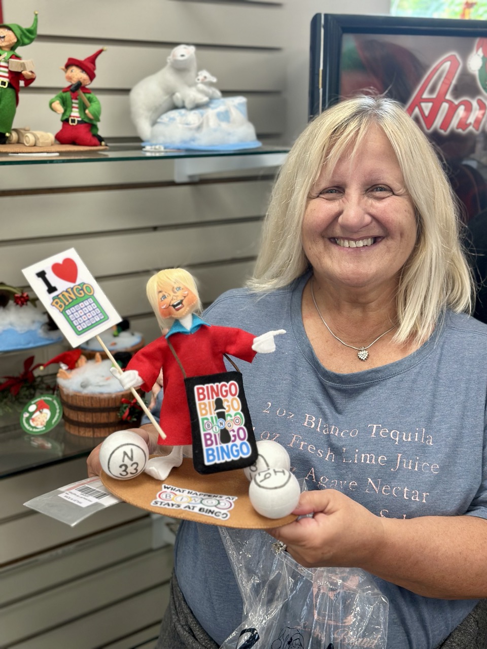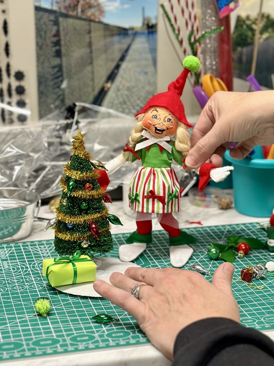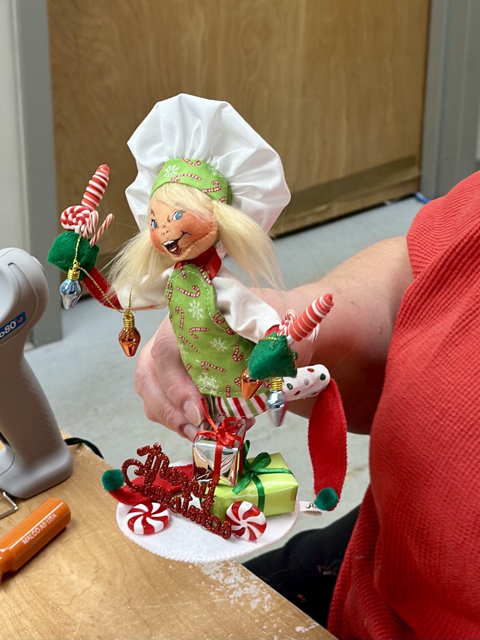 Inside the workshop, creativity was in full swing. More than 60 unique elves were brought to life. Everything from classic holiday characters to one playful elf dressed up for a game of bingo. Each design was as special as the person who made it, and the joy of seeing them all together was pure Annalee magic.