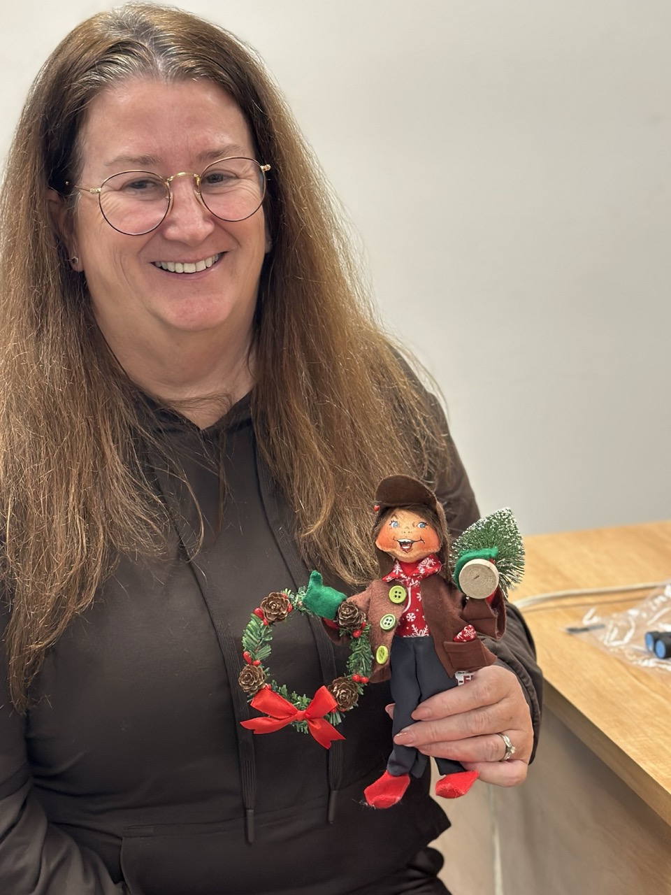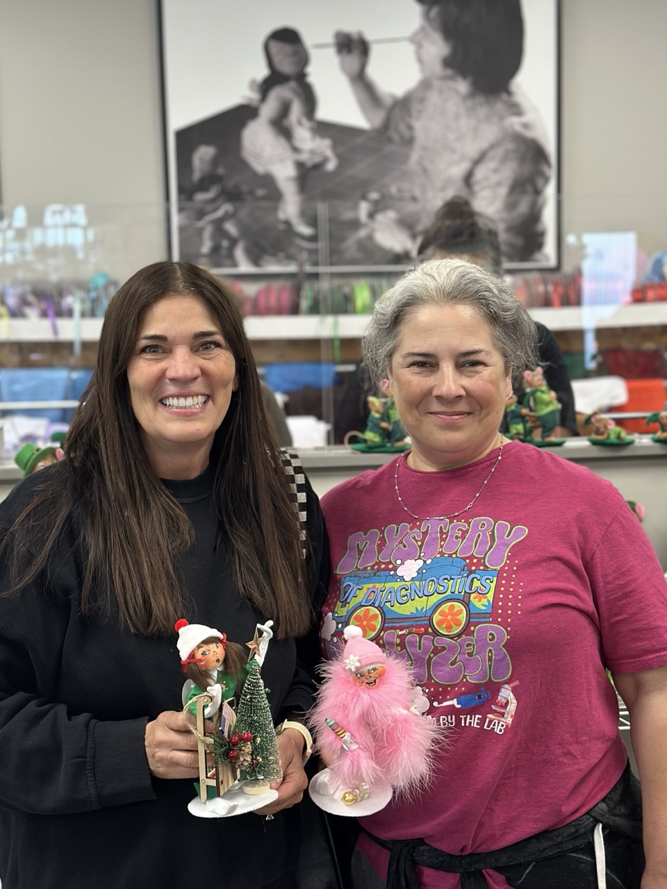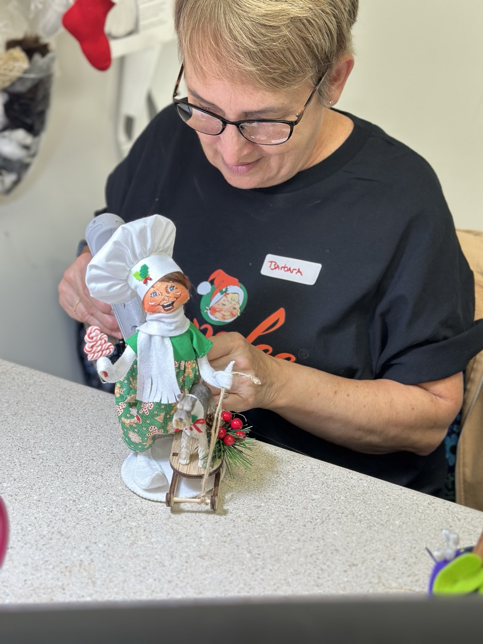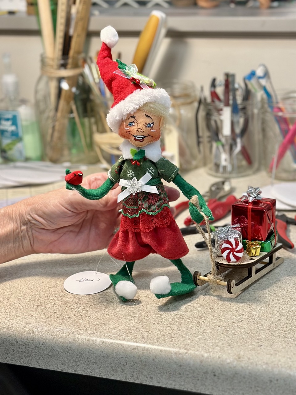 Inside the workshop, creativity was in full swing. More than 60 unique elves were brought to life. Everything from classic holiday characters to one playful elf dressed up for a game of bingo. Each design was as special as the person who made it, and the joy of seeing them all together was pure Annalee magic.