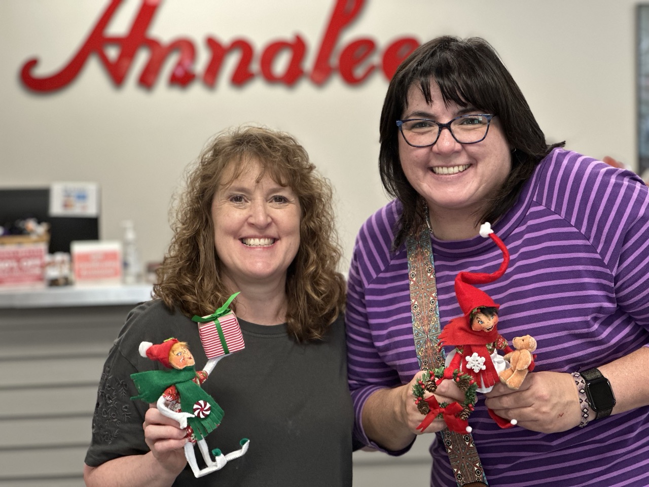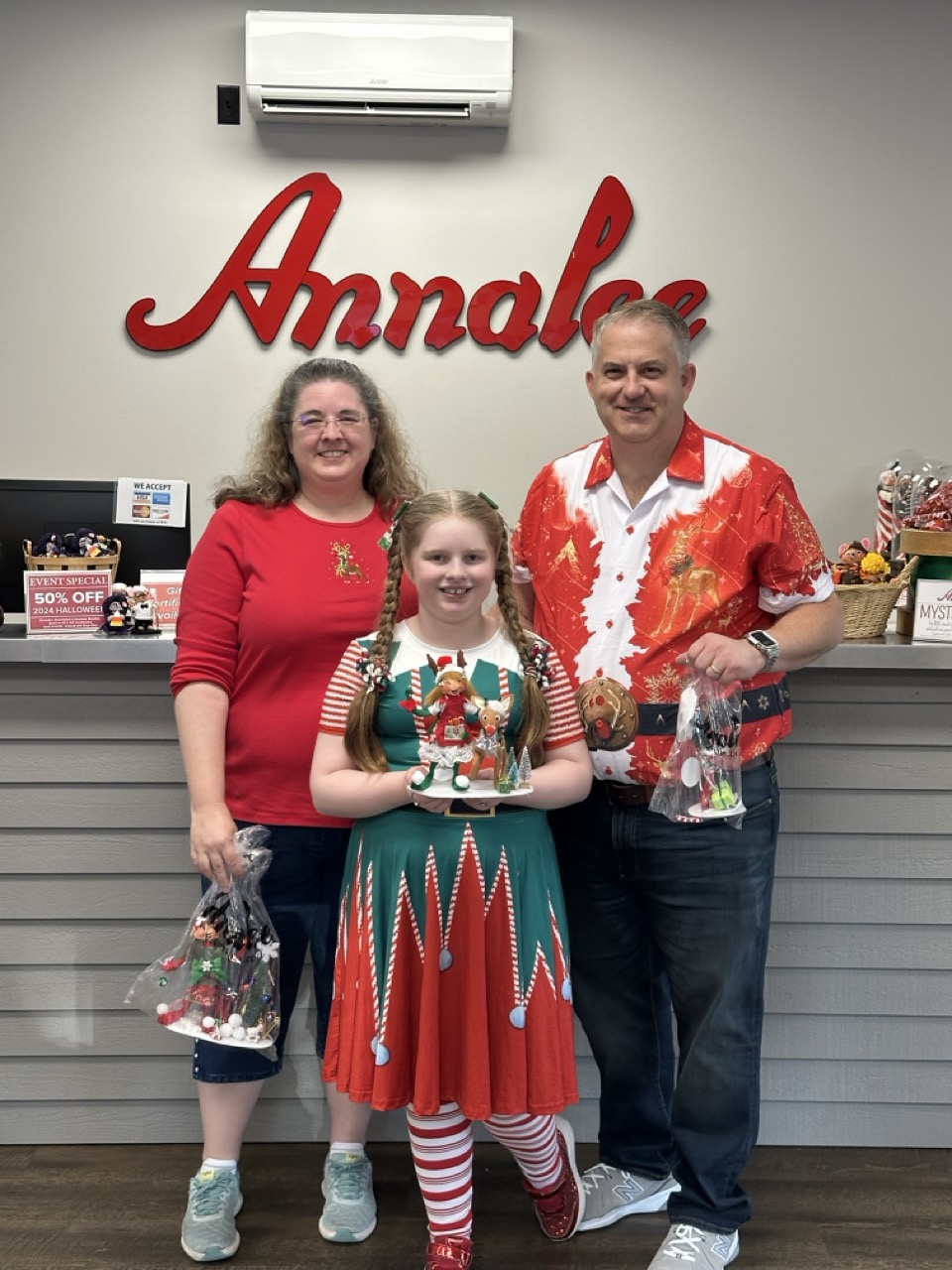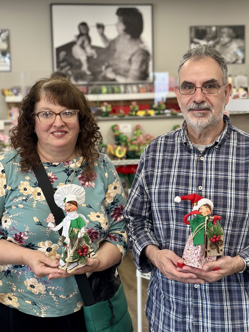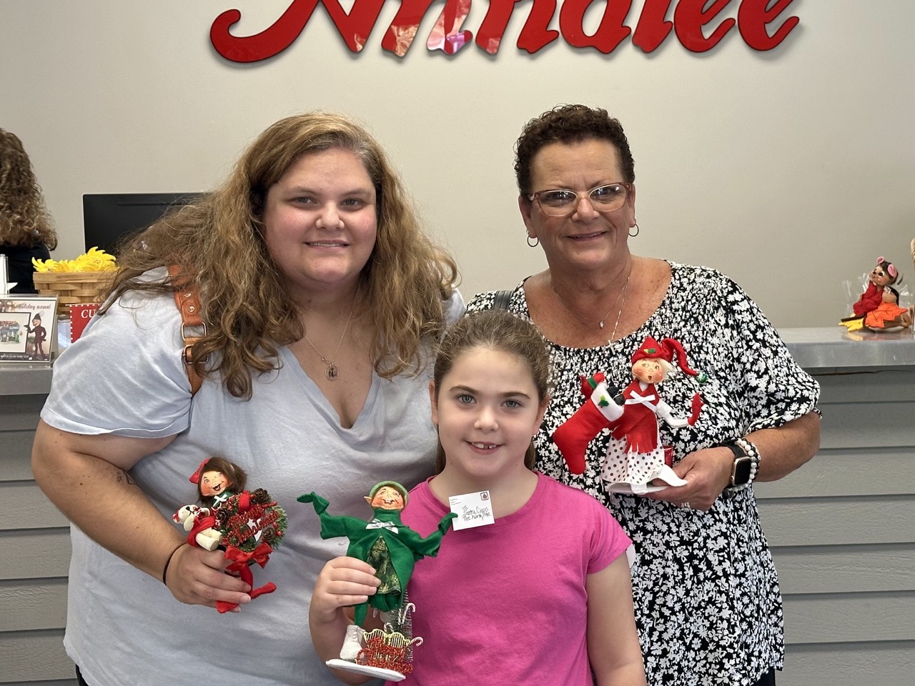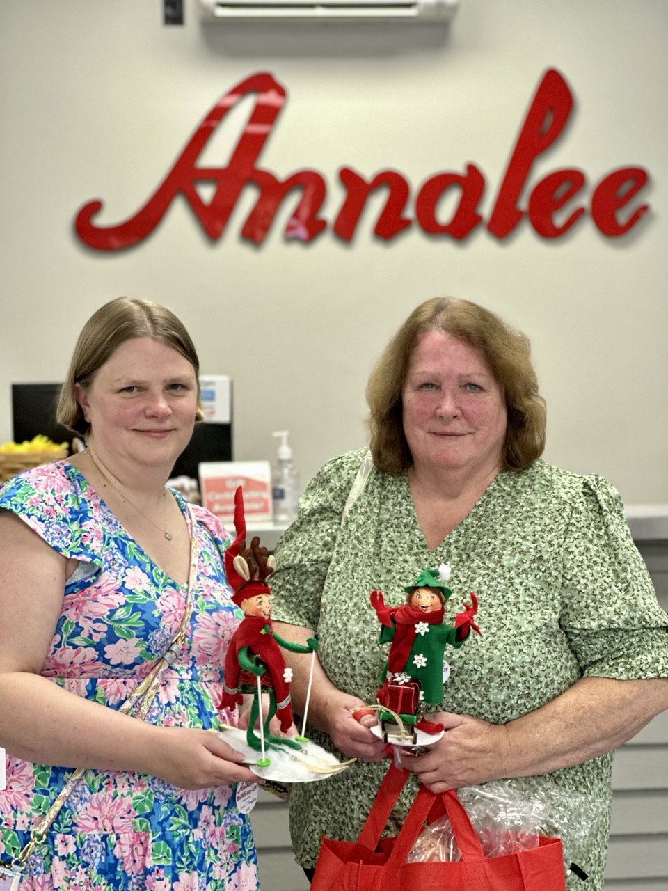 The day was packed with so many special moments. The Harrison Family from Florida, winners of our Summer Photo Contest, stopped by after a morning at Santa’s Village, arriving in full holiday spirit dressed as Santa and elves. A merry crew of holiday regulars sweetened the day with goodies from the Gingerbread Construction Company, while Mother Earth auction winner Debbie Kuick and her daughter traveled all the way from Wisconsin to join the fun. And, of course, no Annalee event would be complete without treats! More than six dozen Cider Bellies doughnuts disappeared in record time. 🍩😋