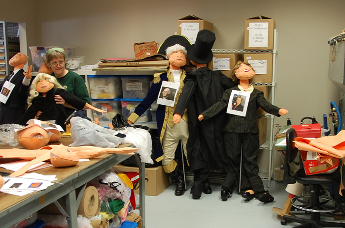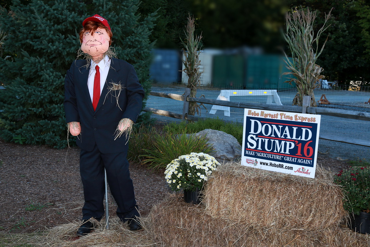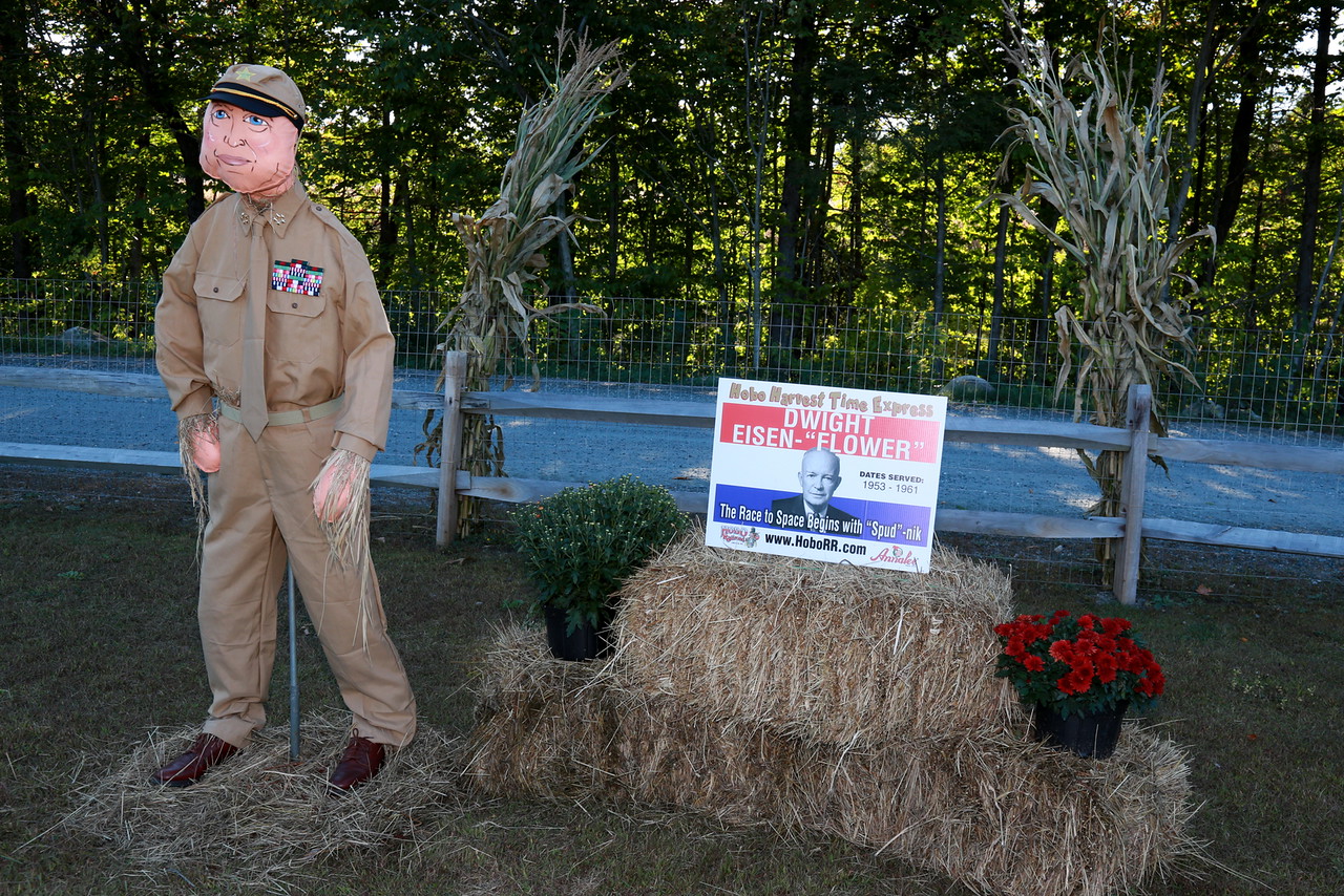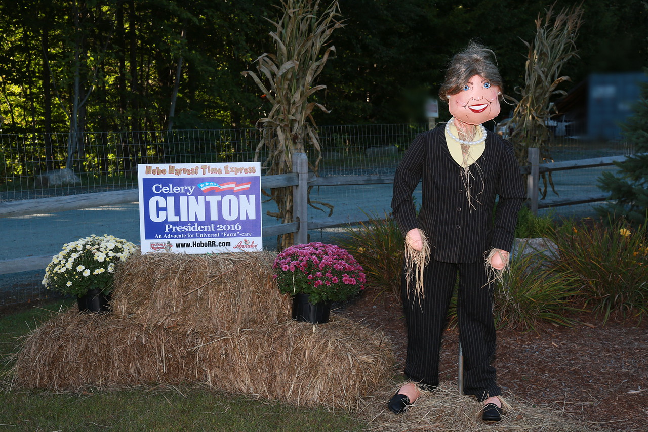 This year’s timely theme for the cornstalk critters is called “Scarecrows of the Oval Office”. Included in the mix of straw-filled characters are George Washington, Abraham Lincoln, Thomas Jefferson, General Dwight Eisenhower, John F. Kennedy with his wife Jacqueline Kennedy and their two young children Caroline Kennedy & John Kennedy Jr. You’ll also find Ronald Reagan, and Bill Clinton with a saxophone, along with the two candidates running for President in 2016, Donald Trump and Hillary Clinton. All of the scarecrows have traditional Annalee Doll faces! They are posed and dressed in such a way that makes them easy to recognize. The famous cornstalk critters will be on display and available for photo ops between 10:00am and 3:00pm daily.