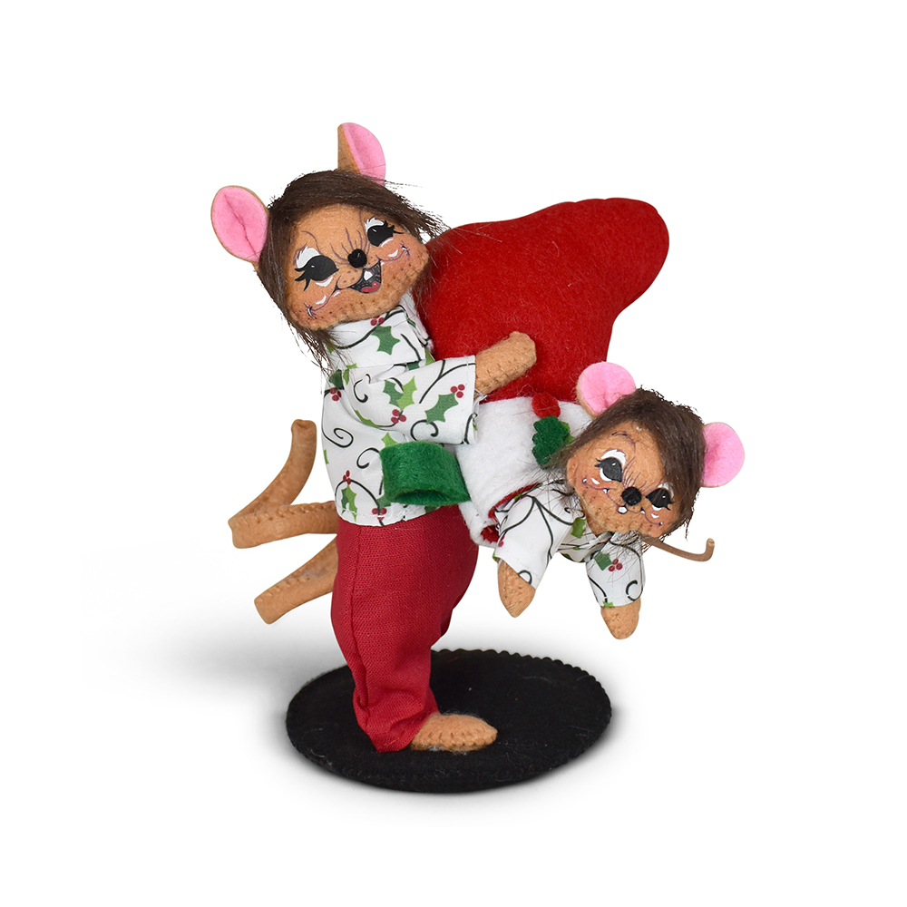 - Get a load of the two mischief-makers in our 5in Holly Jolly mice design! This delightful holiday duo captures a playful scene full of festive charm. Dressed in our holly jolly signature print, the older mouse—sporting bright red holiday pants—has discovered a surprise tucked inside a Christmas stocking. With a mischievous grin, he gives it a shake to reveal a little mouse hiding inside!