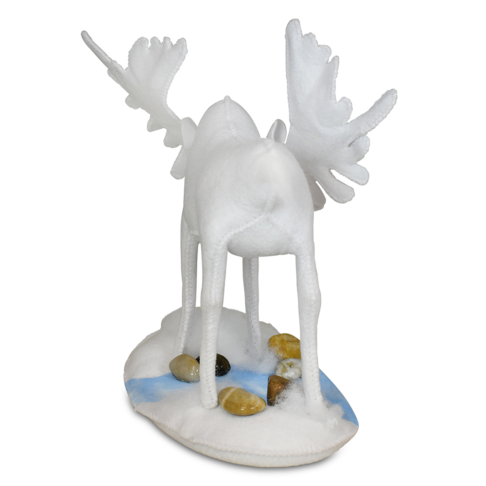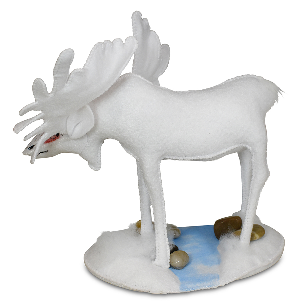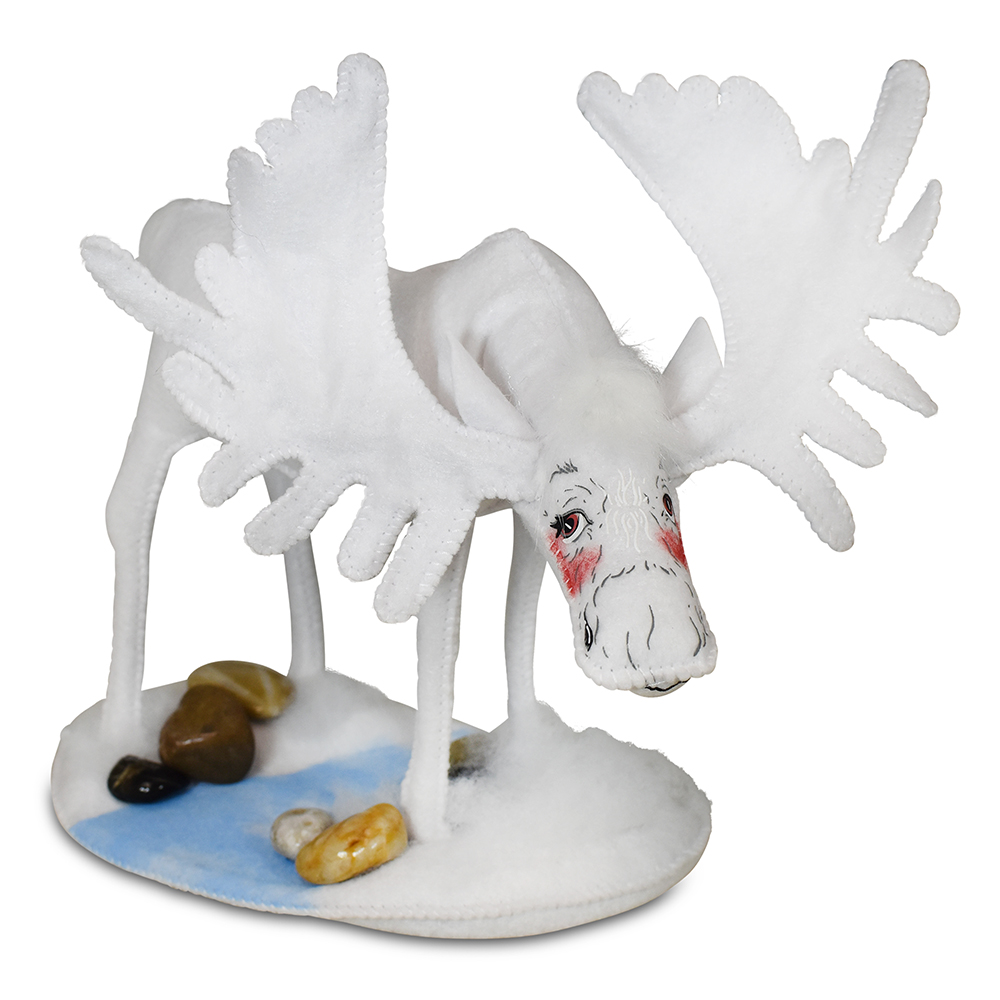 Bundle up and follow the Winter Wanderer on his snowy adventure! This stately white moose makes his way across a frosty felt stream, each careful step cushioned by glittering snow and river rocks that border the icy flow. His towering antlers are like frosted branches, and his gentle expression captures the quiet wonder of a winter’s day. Poised upon a snowy white base, this peaceful traveler brings the calm beauty of the season to your collection—where every detail whispers of still woods, soft snowfalls, and the magic of a journey through winter’s hush.