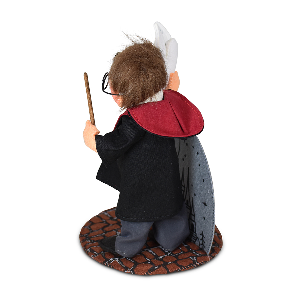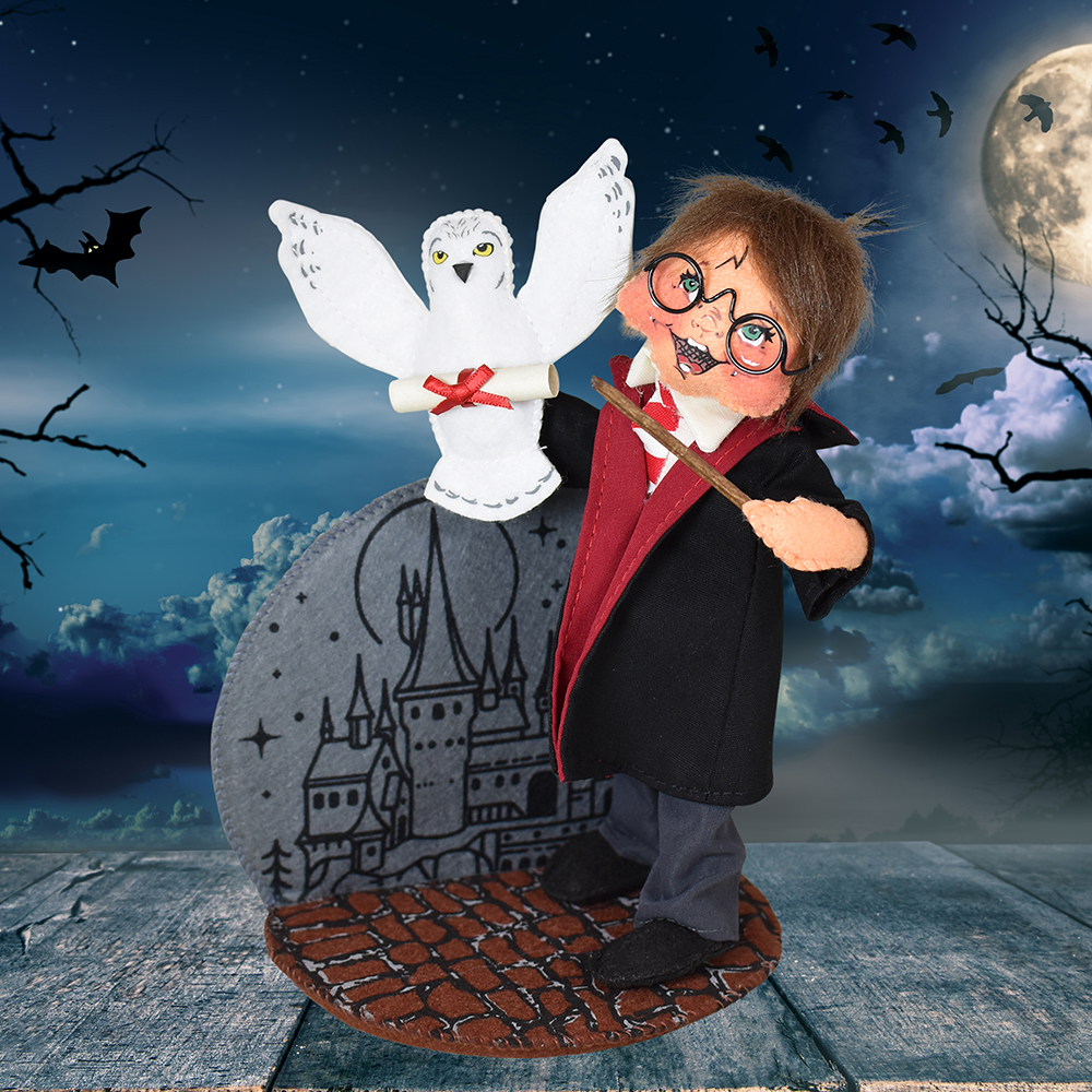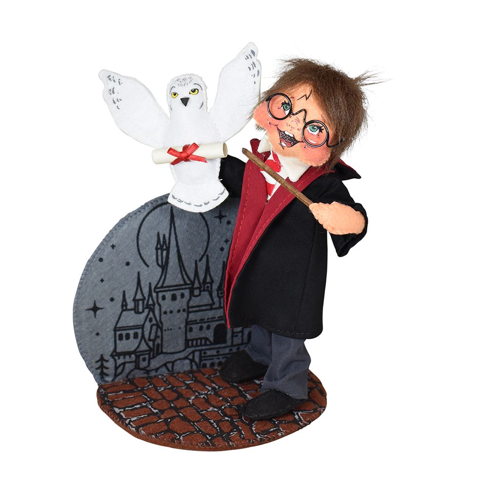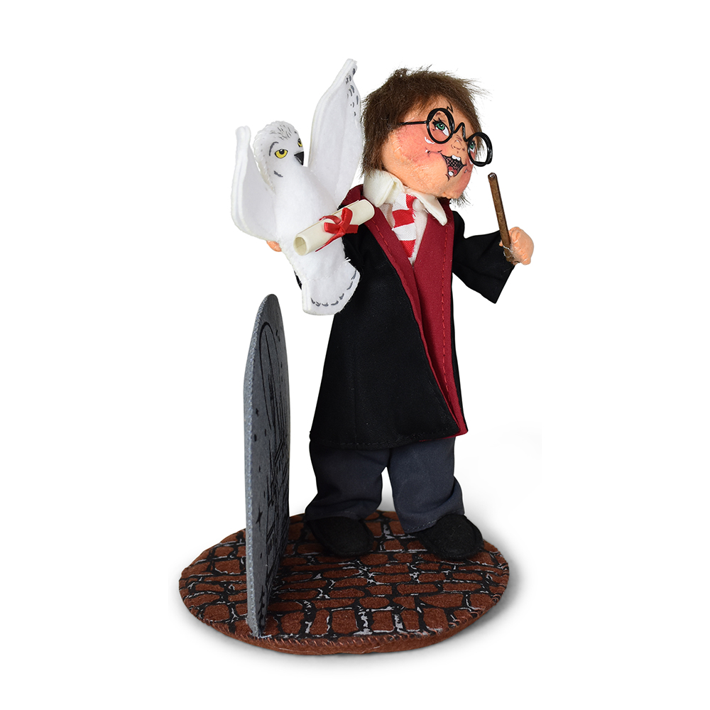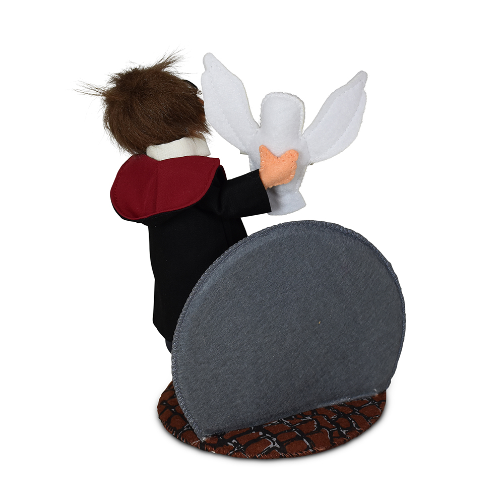 Step into the magic with this enchanting design featuring the one and only Harry Potter, captured in charming handmade detail. Dressed in his signature Gryffindor robes, Harry stands tall and brave with his wand at the ready in one hand—and his loyal snowy owl, Hedwig, perched proudly on the other. Hedwig clutches a tiny rolled message in her talons, perhaps straight from Dumbledore himself!