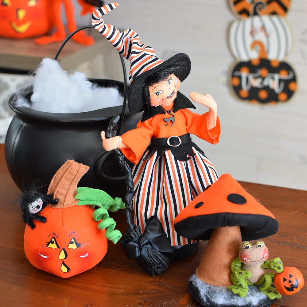 - Meet a star of the 2025 Halloween Collection — our fabulous new 9-inch Good Witch! Dressed to enchant in our signature scary stripe pattern on both her skirt and hat, she’s ready to cast a spell on your Halloween display. Her bright orange top is adorned with a black cat pin, a charming detail collectors will adore. She may look friendly, after all she’s a good witch… but who knows what magic she’s brewing when her spell book is nearby?
