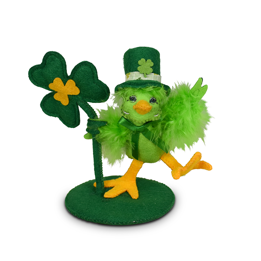 - Full of good cheer, the 4in Lucky Bird has landed with a shamrock in tow! With fluffy feathers, wide-eyed wonder, and a joyful grin, this well-traveled little friend waves you over to join the celebration. The 4in Lucky Bird is a playful reminder that luck often comes with a smile—and sometimes on wings.