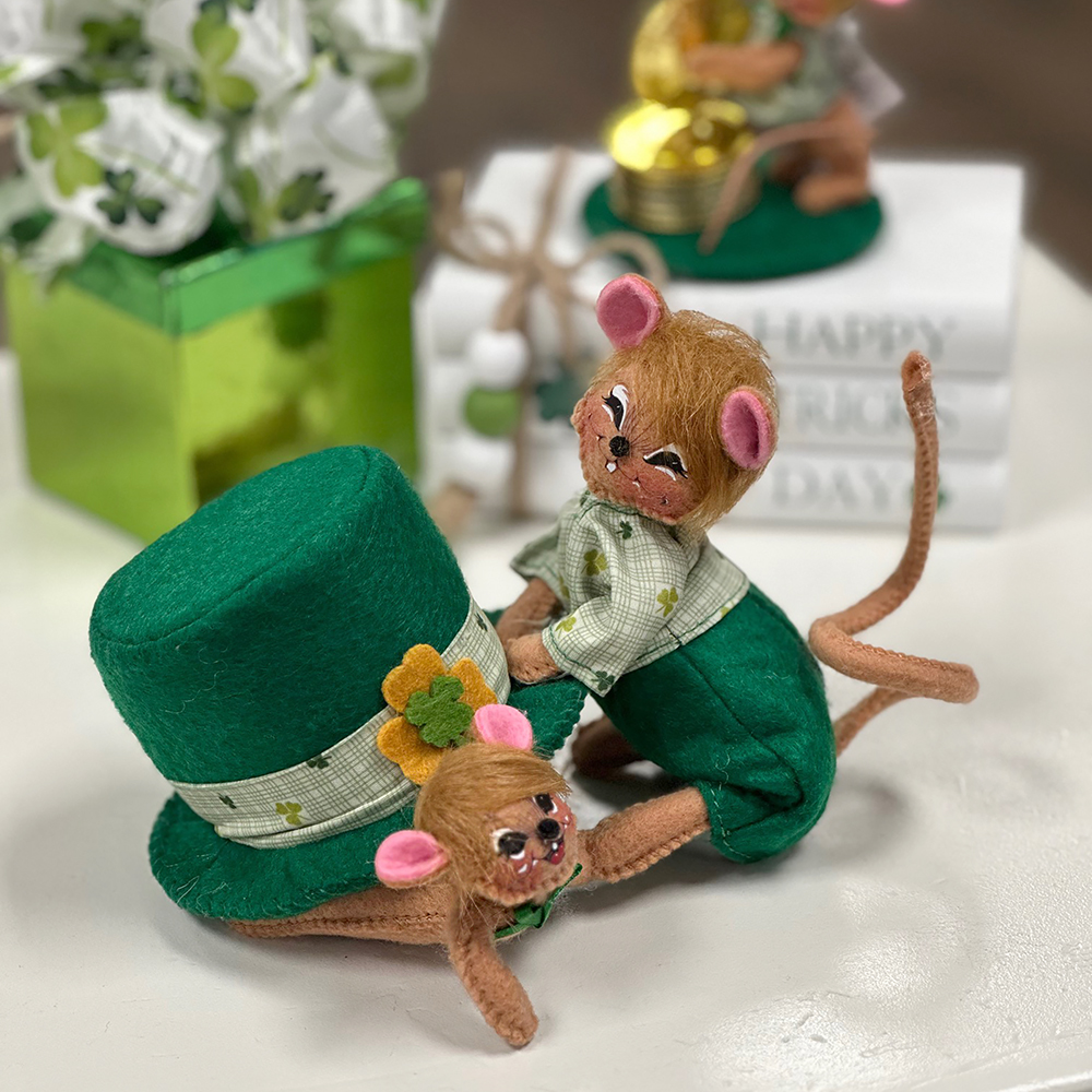 - Playful nostalgia comes to life with the 5in Irish Hide & Seek Mice, a carefree scene of childhood joy and simple pleasures. These curious mice peek and play inside a magical green top hat, capturing the spirit of imagination, friendship, and lucky surprises. The 5in Irish Hide & Seek Mice invites you to slow down, smile, and see what good fortune might appear.