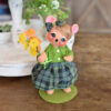 - The six inch amber girl mouse wears a cute dress made with our 2023 signature Irish plaid fabric and has a matching bow in her hair. She’s holding a bouquet of colorful flowers.