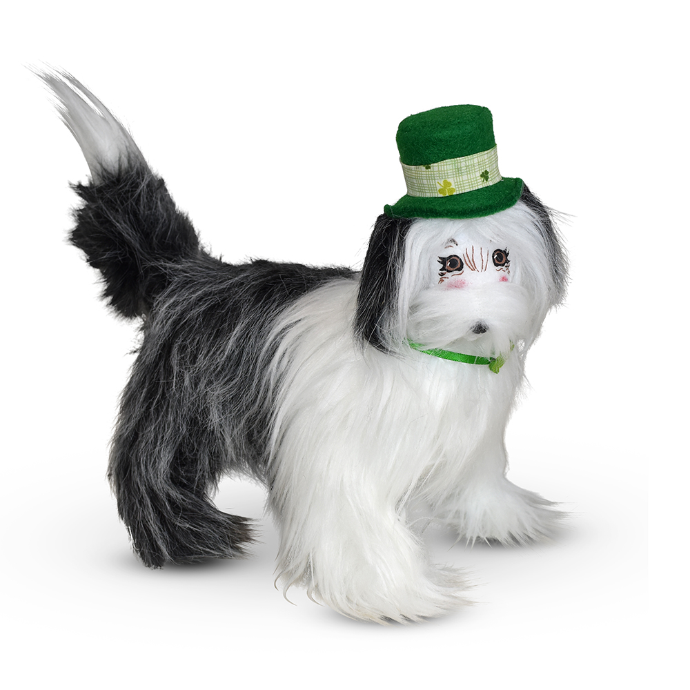 - Make room for a loyal companion full of heart and good fortune with the 7in Irish Sheepdog, a lively design bursting with personality and charm. This luscious fellow wears a bright green satin collar and a jaunty top hat, ready to herd smiles and luck wherever he goes. With his alert stance, expressive face, and boundless energy stitched into every detail, the 7in Irish Sheepdog captures the brave, affectionate spirit of this beloved breed.