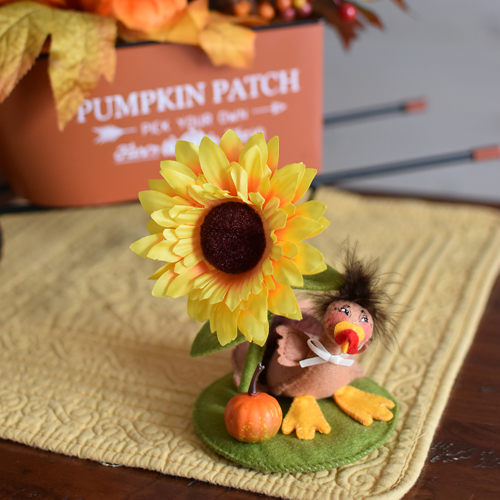 - Feast your eyes on the most a-maize-ing turkey of the season – the 3in Turkey with Sunflower! This charming little Tom has found himself the perfect shady spot… right under a giant sunflower!