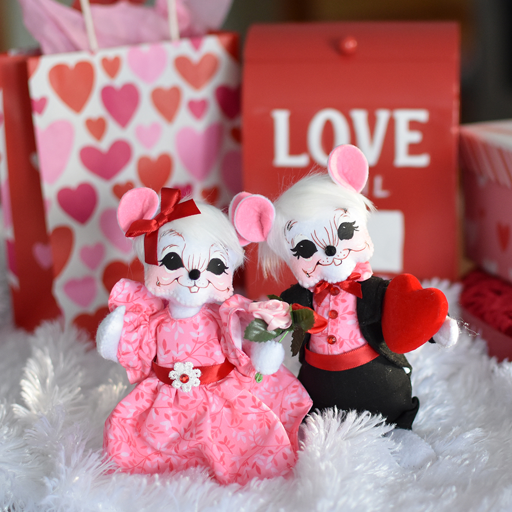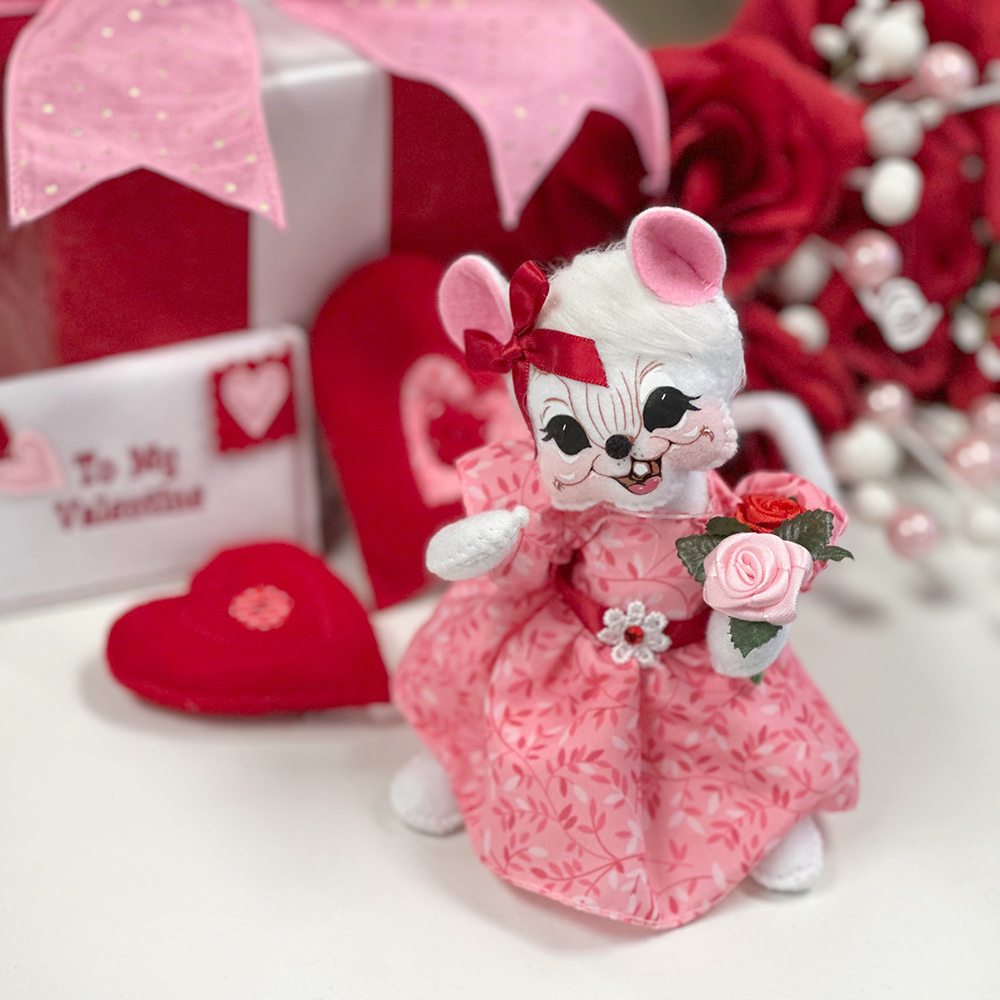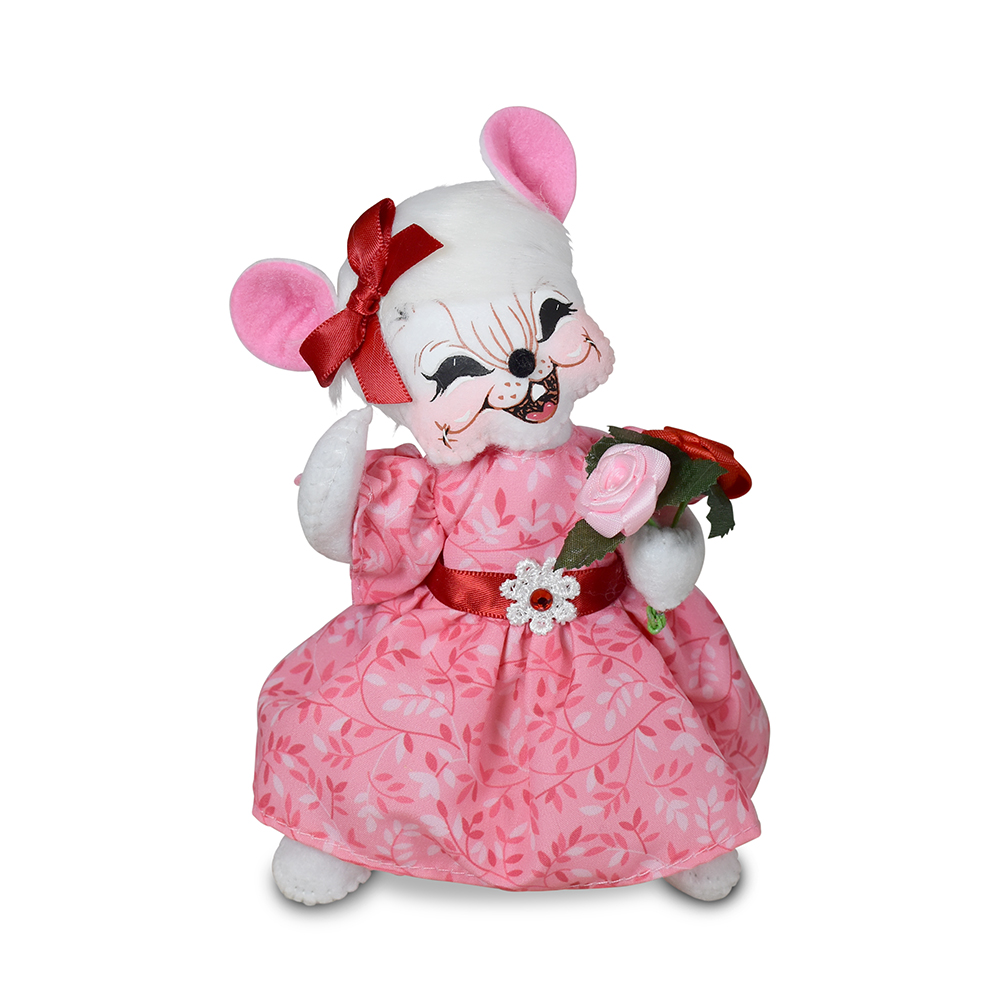 - Overflowing with color and care, the 6in Love Mouse with Flowers brings a bouquet—and a smile—to Valentine’s Day or any occasion where some extra tender loving care is needed. Dressed in a pink and white floral dress with a bold red satin ribbon and flower buckle, the beauty carries a lush bouquet of multicolored roses as a joyful symbol of love in full bloom.