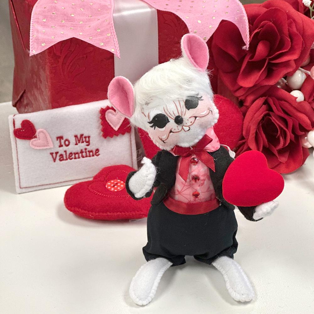 - Dressed to impress and ready to charm, the 6in Love Mouse with Heart is romance personified. Wearing a classic black tuxedo with a red satin bow tie and pink and white floral shirt, this dapper fellow presents a bold red heart as his gift of love. His confident stance and warm smile say it all—this mouse means business when it comes to affection.