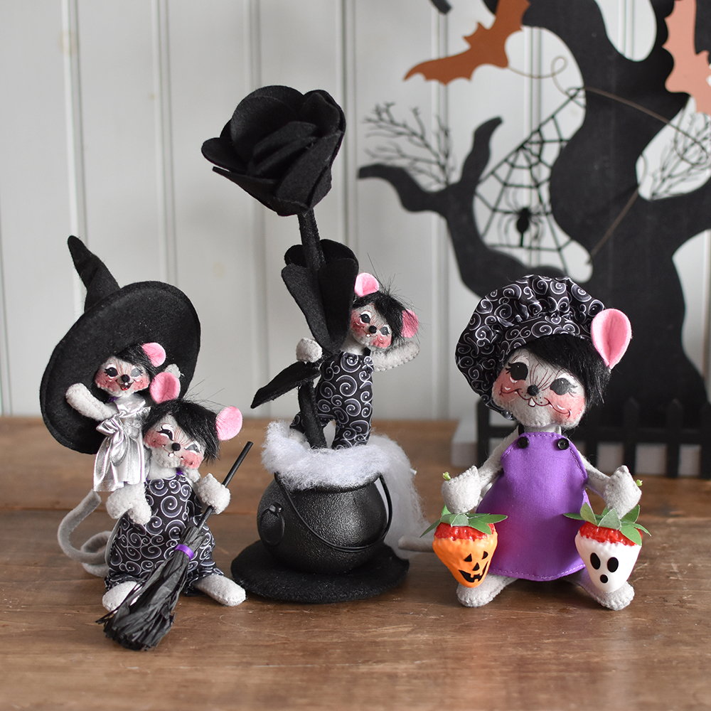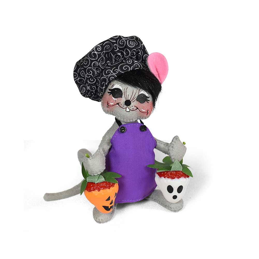 • Need a hand in the kitchen this Halloween? Our 6-inch Fright Night Chef Mouse is ready to stir up some seasonal magic! This adorable grey mouse wears a vibrant purple apron and is hard at work dipping strawberries in festive Halloween designs.