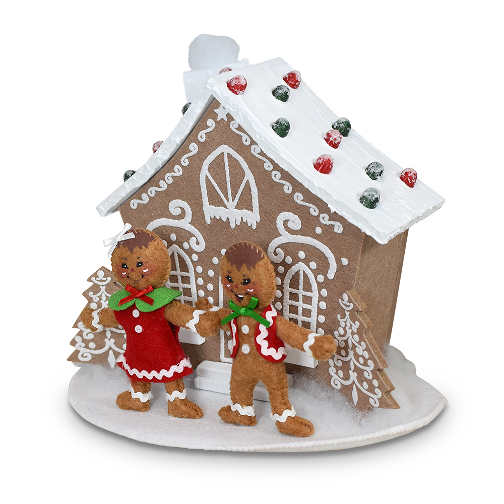 - Sugar, spice, and everything nice! Frosted Friends Forever is a sweet celebration of friendship and holiday magic, featuring an adorable gingerbread boy and girl standing proudly before their candy-covered dream home. Their cozy cookie cottage is a masterpiece of merry detail—gumdrops dot the rooftop like frosty jewels, icing swirls trim the eaves, and iced gingerbread trees accent the snowy white felt base.