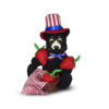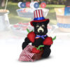 - The black bear sits holding two felt strawberries. A basket next to him holds another along with a red check cloth. He wears an Uncle Sam style hat and has a red, white and blue bow at his neck. Great summertime decoration for your home.