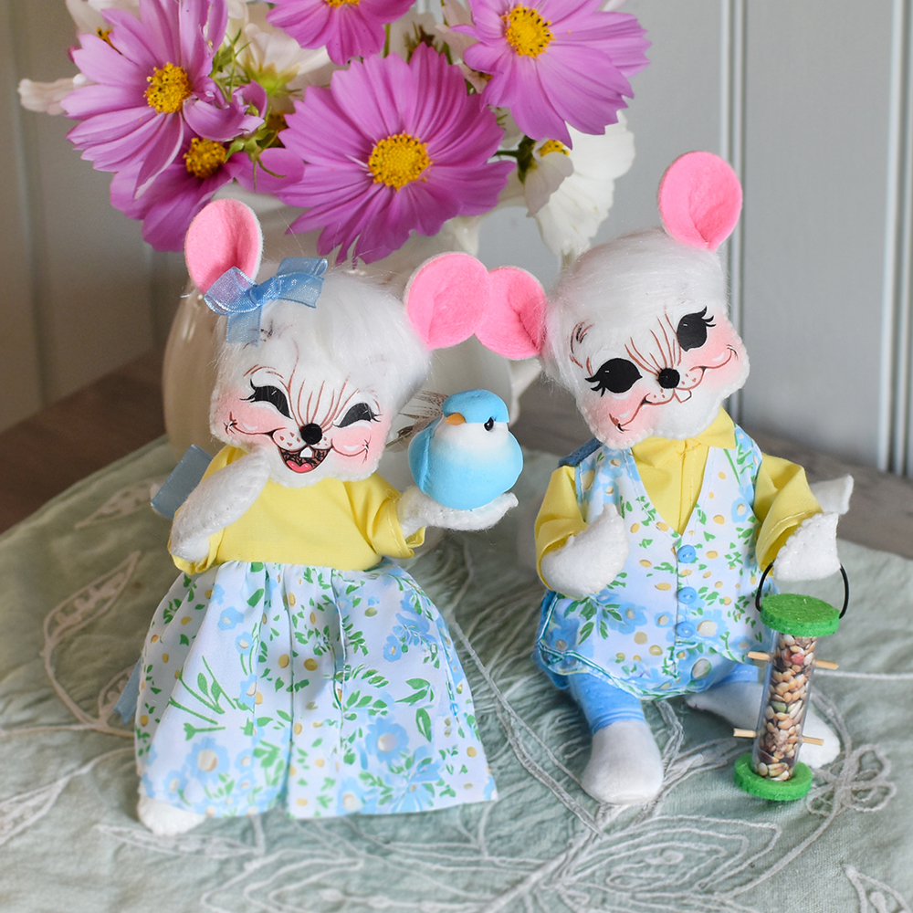 - Step into a gentle spring dream with our Springtime Mouse Couple! This delightful set is a celebration of Easter and all things fresh and new. Each mouse is dressed in a charming blue floral print accented with cheerful touches of yellow—evoking the tender glow of a spring sunrise.