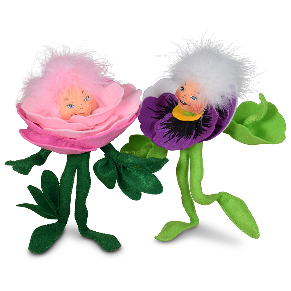 • Bring a bouquet of charm to your collection with the 9in Posy Pixie Set! This delightful duo features a 9-inch Pansy Elf blooming in cheerful multi-colored petals and a 9-inch Peony Elf glowing in soft shades of pink. Together, these garden sprites with their vintage expressions taken from Annalee’s 1963 sketches, look as though they’ve fluttered straight out of an enchanted garden.